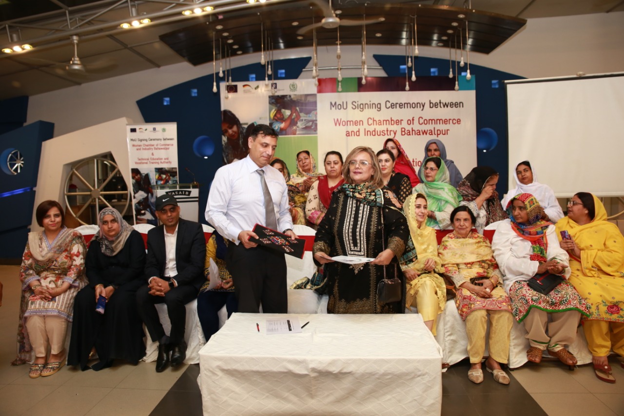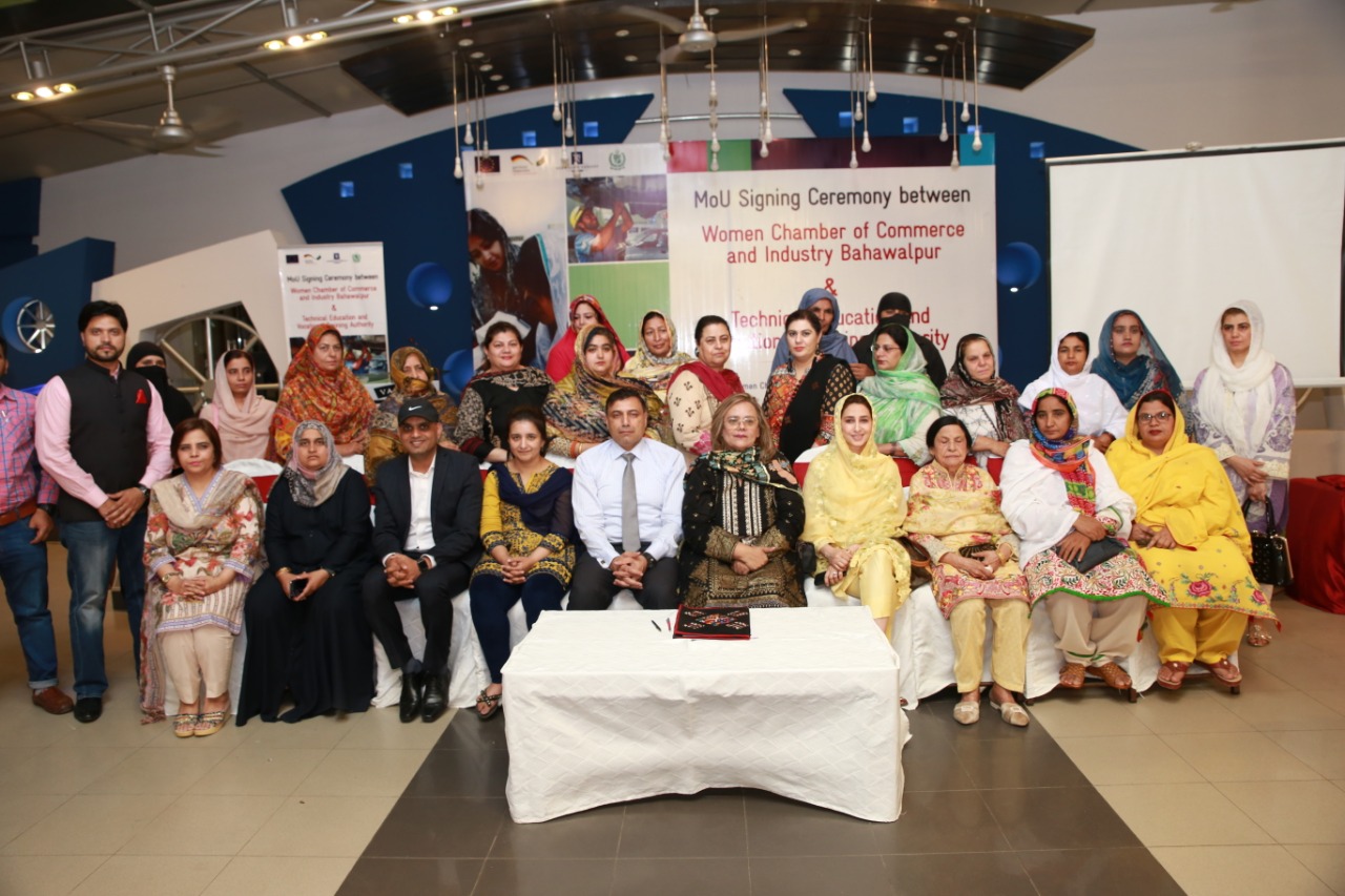 Bahawalpur, April 30, 2019: Technical Education and Vocational Training Authority (TEVTA) Punjab and Women Chamber of Commerce and Industry, (WCCI) Bahawalpur signed Memorandum of Understanding (MoU) today at a local hotel in Bahawalpur to promote ‘National Skills for All Strategy’ and engagement of employers in Technical and Vocational Education and Training (TVET) for the provision of industry-driven human resource.